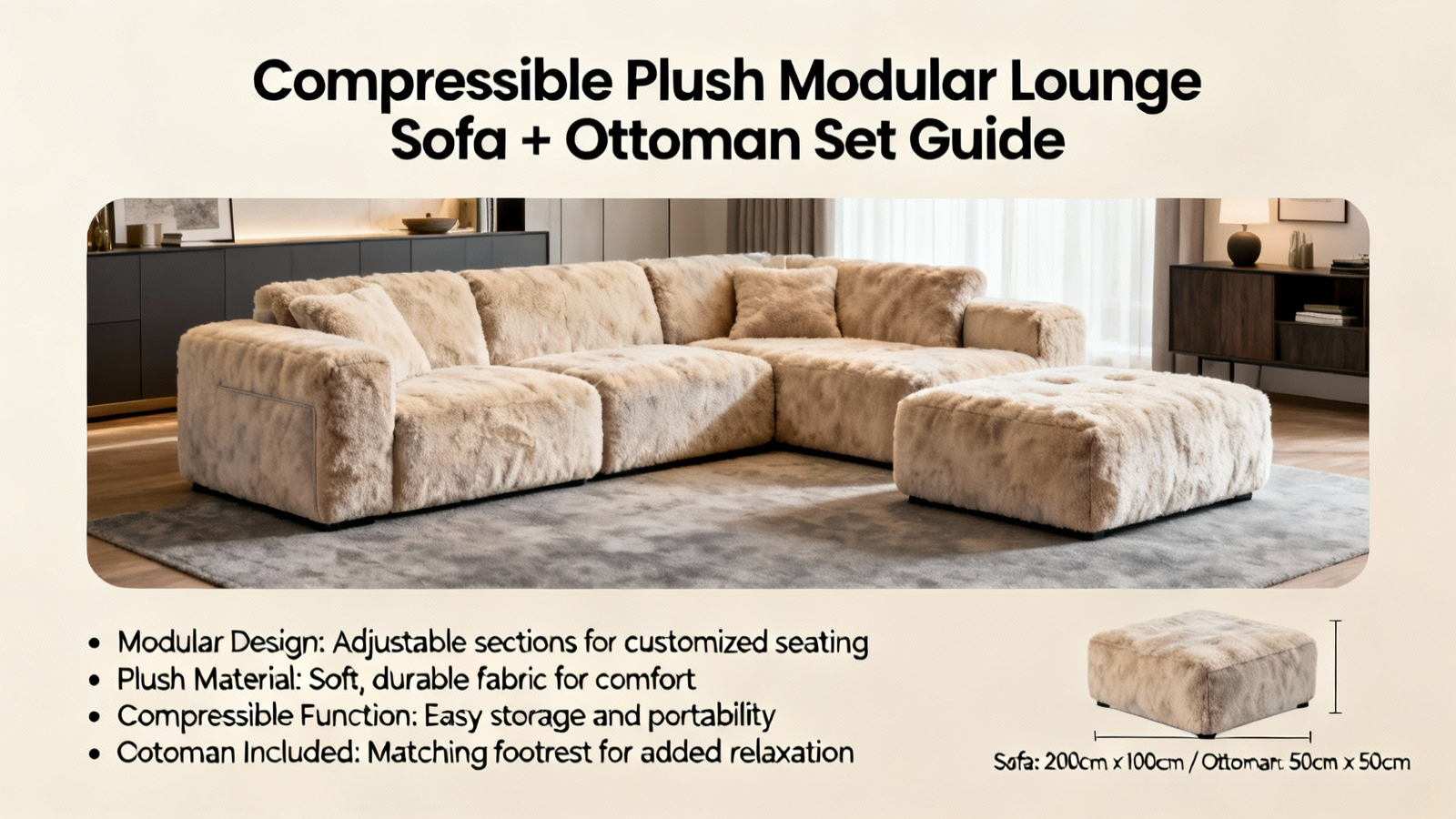 Compressible Plush Modular Lounge Sofa + Ottoman Set Guide
