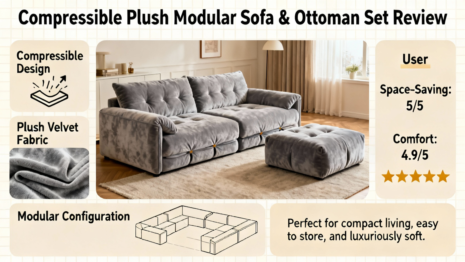 Compressible Plush Modular Sofa & Ottoman Set Review
