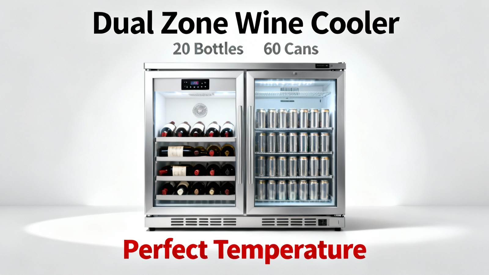 Dual Zone Wine Cooler: 20 Bottles, 60 Cans, Perfect Temperature