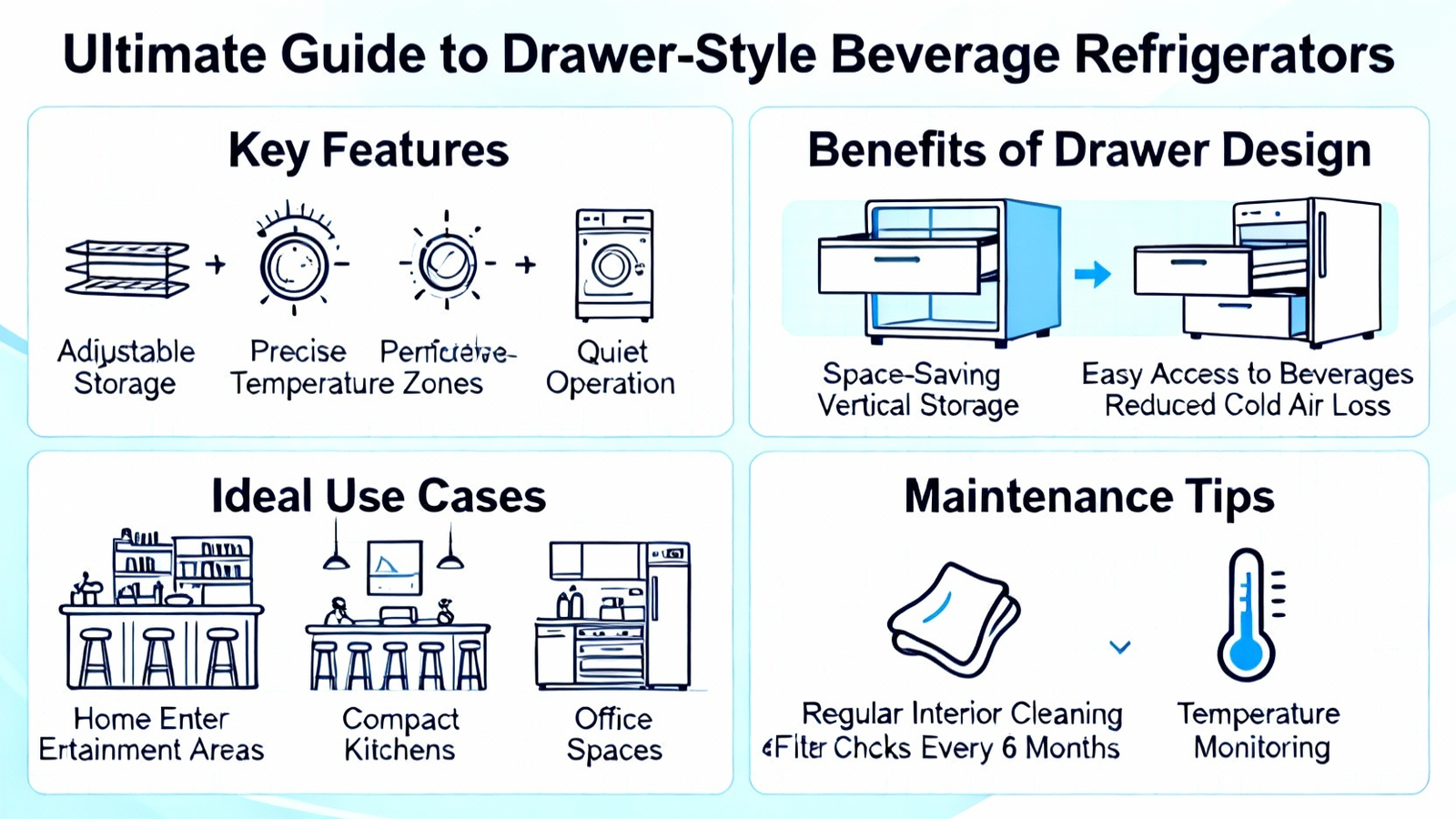 In summary, the modern drawer-style beverage refrigerator represents a significant leap in appliance design, directly addressing user needs through thoughtful innovation. We’ve seen how its ergonomic drawer design solves accessibility issues commonly voiced by consumers, its advanced cooling and acoustic engineering ensures perfect, quiet performance, and its commercial-grade stainless steel and IPX4 construction guarantees durability for both indoor and outdoor use. Furthermore, its space-efficient capacity and DOE-certified energy efficiency make it a smart, sustainable choice for any household or commercial setting.